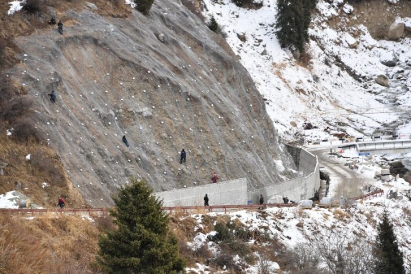 В рамках рабочего объезда Бауыржан Байбек проверил ход строительства защитного сооружения и укрепления скальных грунтов на опасных участках автодороги ГЭС-1 - БАО.