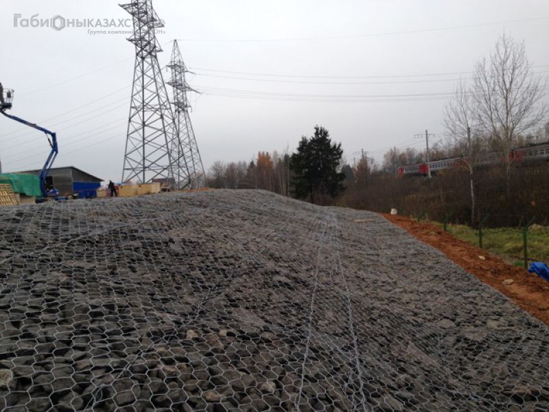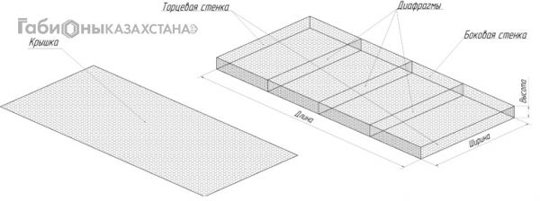 Матрацы представляют собой плоскостные конструкции заводского изготовления малой высоты и большой площади поверхности по СТ РК ГОСТ Р 52132-2008 и ТУ 14-178-350-98, выполненные из металлической сетки двойного кручения с шестиугольными ячейками, разделенные на секции при помощи диафрагм (рис. 1), устанавливаемых внутри баз матрацев через каждый метр по длине. Двойное кручение проволочной сетки обеспечивает целостность, прочность и равномерность распределения нагрузок, предотвращает раскручивание в случае разрыва сетки.