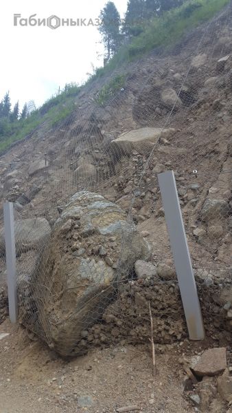 Полотнища сетки шириной до 4-х метров применяются для защиты от камнепадов автомобильных и железных дорог, используются также для накопления и стабилизации растительных грунтов на склонах гор, откосах. Сетка, зарастая травой, кустарником, деревьями образует крепкий покров, исключающий размыв склона. Благодаря высоким прочностным свойствам сетки двойного кручения, она может удерживать, направлять падение камней размером до 1 м.